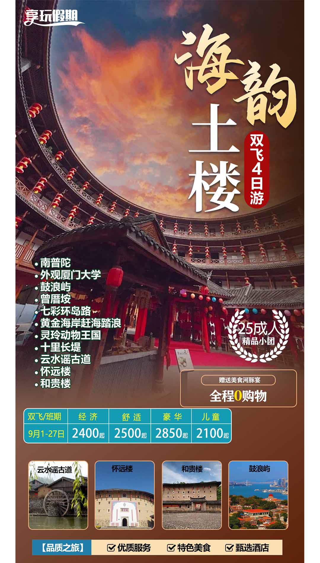 廈門鼓浪嶼+云水謠,25人精品小團(tuán)4日游